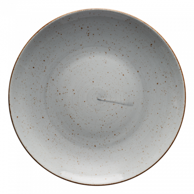 Univerzální šedá hluboká deska je výjimečná díky ruční malbě vnitřních stěn, která přemění každý kus na nenapodobitelný originál. Udělá Váš provoz útulným a poskytne hostům estetický zážitek. Hodí se nejen na servírování polévek, ale i na různé druhy těstovin a kaší. Deska má průměr 23 cm a je vhodná jak do myčky, tak do mikrovlnné trouby.