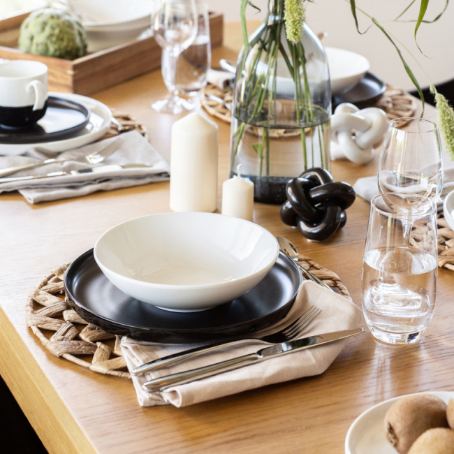 Mělká deska z linky Flow nabízí širokou škálu využití. Například na servírování masových, zeleninových nebo rybích pokrmů. Má průměr 28 cm a je vhodný jak do myčky, tak do mikrovlnné trouby.
