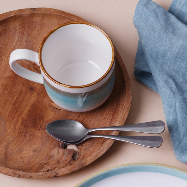 Hrnek Gaya Rustico je na první pohled výrazný díky detailu letokruhů, lesklému vzhledu a několika barevným odstínům porcelánu. Je vyroben z odolného porcelánu Fine China, který zvládne každodenní použití s vysokým zatížením. Objem hrnku (300 ml) se počítá až k okraji. Hrnek Gaya Rustico je vhodný do průmyslových myček a mikrovln.