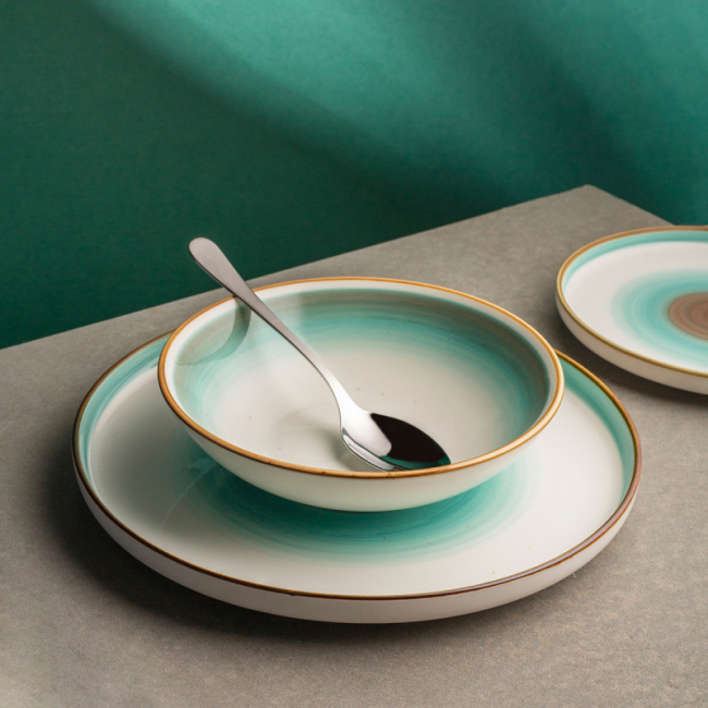 Mělký talíř Gaya Rustico je na první pohled výrazný díky detailu letokruhů, lesklému vzhledu a několika barevným odstínům porcelánu. Deska byla vyrobena z odolného porcelánu Fine China, který zvládne každodenní použití s vysokým zatížením. Jeho průměr je 23 cm. Mělká deska Gaya Rustico je vhodná jak pro průmyslové myčky nádobí, tak pro mikrovlny.