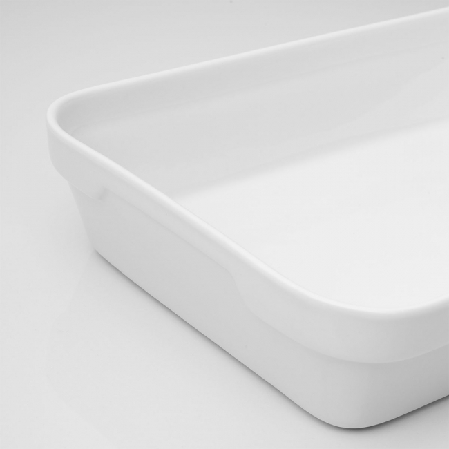 Univerzální porcelánový talíř v minimalistickém obdélníkovém provedení o rozměrech 30 cm x 17,5 cm je vhodný pro všechny příležitosti spojené se stolováním. Je vhodný do myčky a mikrovlnné trouby.