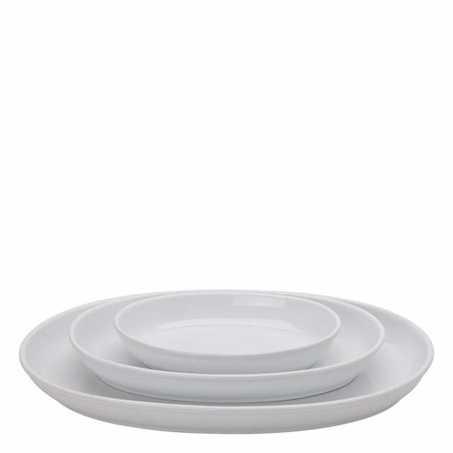 Bílý porcelánový talíř Lunasol má oválný tvar o průměru 42 cm. Je vhodný pro univerzální podávání. Talíř je vhodný do myčky nádobí.