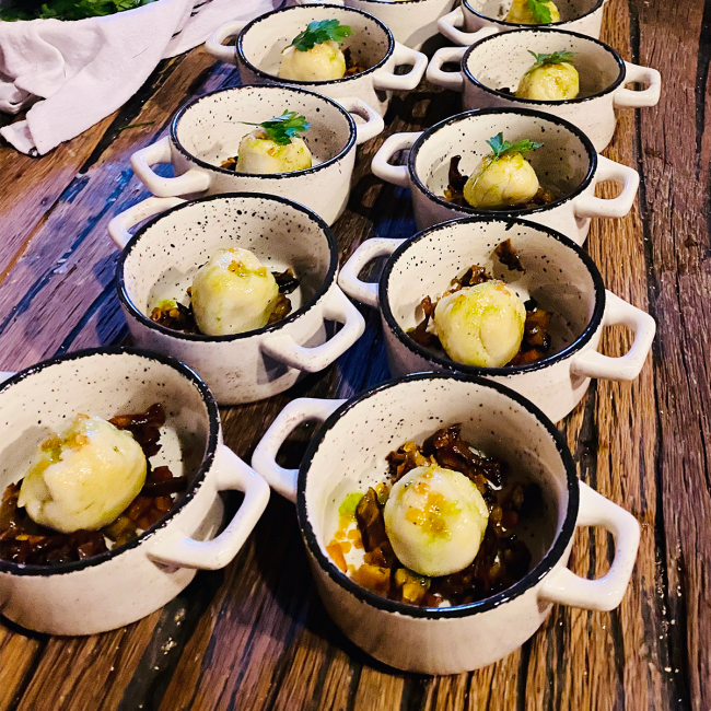 Zaujměte hosty ve svém podniku a podávejte jim předkrmy v misce s neobvyklým okrajem, designovým vzorem a lesklým povrchem. Podávejte trendy a stylové.
