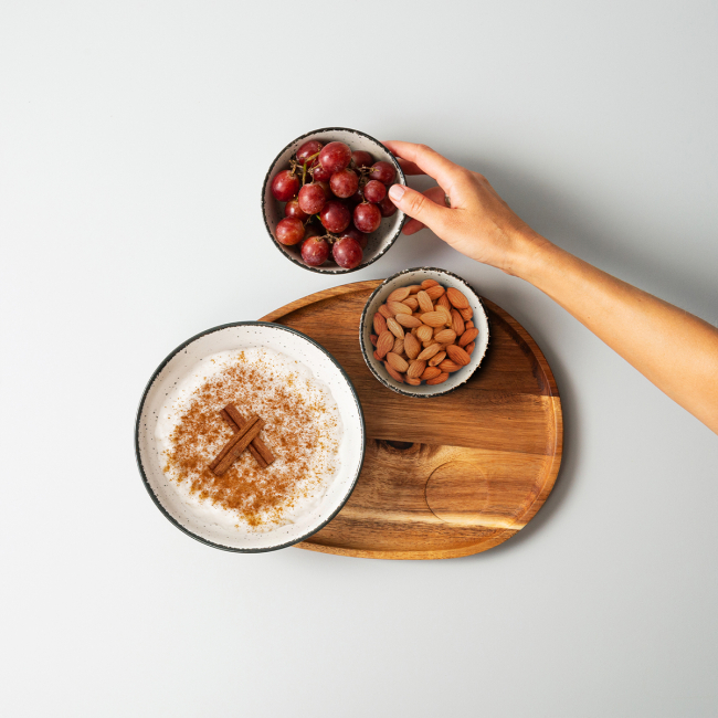 Zásobník na agávové dřevo je ideální pro podávání jakýchkoli předkrmů – ořechů, ovoce nebo dipů v malých miskách Flowl. Zásobník má jemně zvednuté okraje, takže se s ním snadno a elegantně manipuluje. Achátové dřevo se vyznačuje vysokou pevností a dlouhou životností –, zahradní nábytek, mosty a různé zemní práce jsou z něj vyrobeny ve velkém množství.