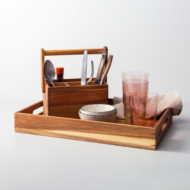 Zásobník na agávové dřevo je ideální pro podávání jakýchkoli předkrmů – ořechů, ovoce nebo dipů v malých miskách Flowl. Zásobník má jemně zvednuté okraje, takže se s ním snadno a elegantně manipuluje. Achátové dřevo se vyznačuje vysokou pevností a dlouhou životností –, zahradní nábytek, mosty a různé zemní práce jsou z něj vyrobeny ve velkém množství.