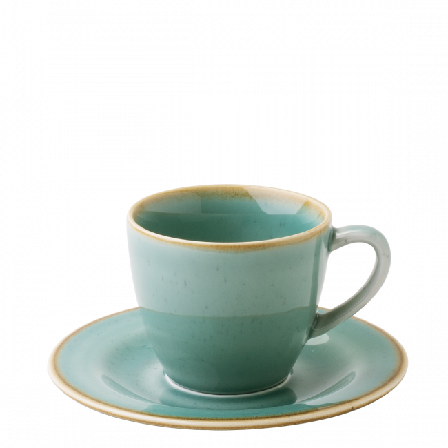 Tyrkysový podšálek na kávu Gaya Sand je specifický svým osobitým a uměleckým vzhledem, inspirovaný přírodními barvami. Je vyroben z odolného porcelánu Fine China v tyrkysové barvě a lesklém vzhledu. Je vhodný pro průmyslové myčky nádobí a mikrovlnky.