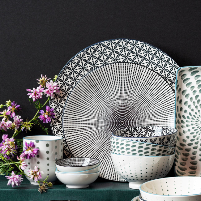 S porcelánovou mísou z kolekce Elements Asia Wood se nápaditě ocitnete na dalekém východě. Jeho interiér tvoří ručně malovaný černobílý dekor. Skvělé je to například na servírování wasabi.