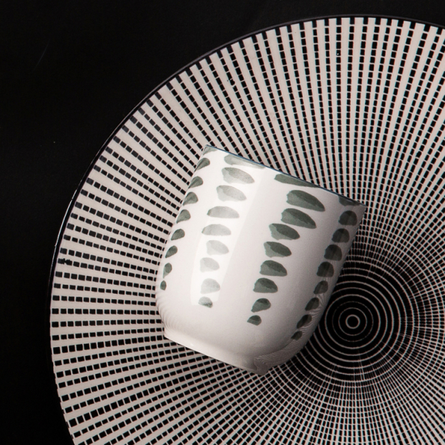• Porcelánový šálek z kolekce Elements Asia Earth dodá vašemu kulinářskému zážitku atmosféru Dálného východu. Jeho design se skládá z ručně malovaných zelených teček v různých odstínech. Pro dosažení maximálního asijského zážitku doporučujeme podávat v něm zelený čaj.