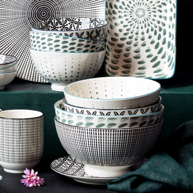 S porcelánovou mísou z kolekce Elements Asia Wood se nápaditě ocitnete na dalekém východě. Jeho interiér tvoří ručně malovaný černobílý dekor. Skvělé je to například na servírování wasabi.