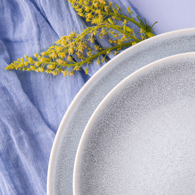Talíř z řady Gaya Atelier Glacial Ice dodá vašemu provozu jedinečnost a přinese hostům ledové osvěžení. Zvenku je matný a zevnitř lesklý. Jeho barevná část vypadá jako hladina zamrzlého jezera. Stejně unikátní je i motiv každého kousku porcelánu v této řadě.