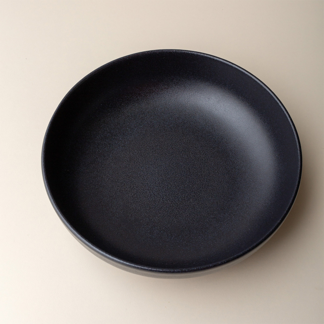 Základní mělké desky v matné černé barvě jsou vhodné zejména pro moderní gastro provozovny laděné v industriálním stylu. Díky jejich minimalistickému designu bude každé jídlo vypadat stylově a luxusně. Desky jsou vyrobeny z kameniny.