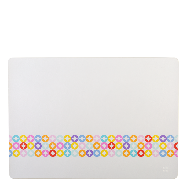 Dětské prostírání s barevnými vzory. Jednoduchý design s jasnými barvami přitahuje pozornost dětí, ale zároveň zachovává čistý a příjemný vzhled stolu. Ubrus je vyroben z odolného PVC. Vhodné pro gastronomická zařízení a předškolní zařízení.