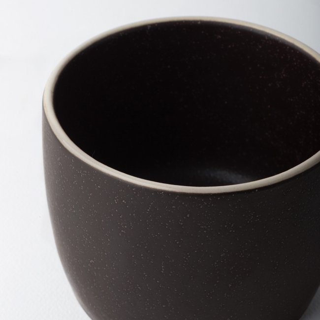 Hrnek bez ucha Gaya Elements Terra North o objemu 65 ml je ideální na espresso. Tmavě hnědý povrch s jemným tečkováním vytváří výrazný vizuální efekt a podporuje jednotný vzhled servisu. Tvar bez ucha šetří místo při skladování a usnadňuje manipulaci.Díky reaktivní glazuře je každý kus originál, proto se může lišit barevným odstínem či vzorem.
