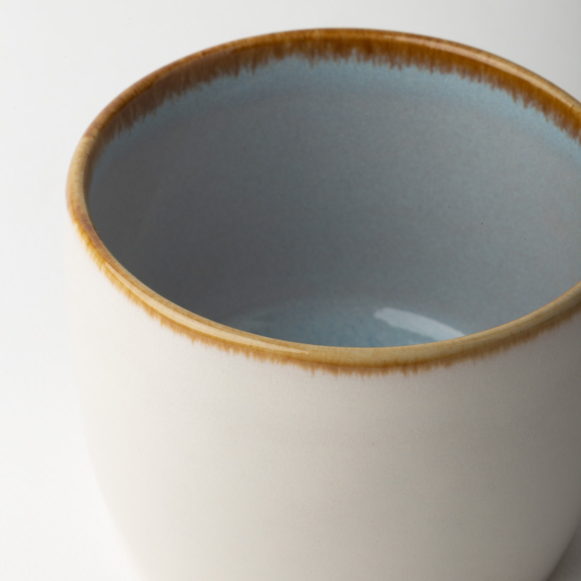 Hrnek bez ucha Gaya Elements Day North o objemu 65 ml je ideální na espresso. Jemně modrý vnitřní povrch a hnědý okraj vytvářejí čistý kontrast a podporují jednotný vzhled servisu. Tvar bez ucha šetří místo při skladování a usnadňuje manipulaci.Díky reaktivní glazuře je každý kus originál, proto se může lišit barevným odstínem či vzorem.