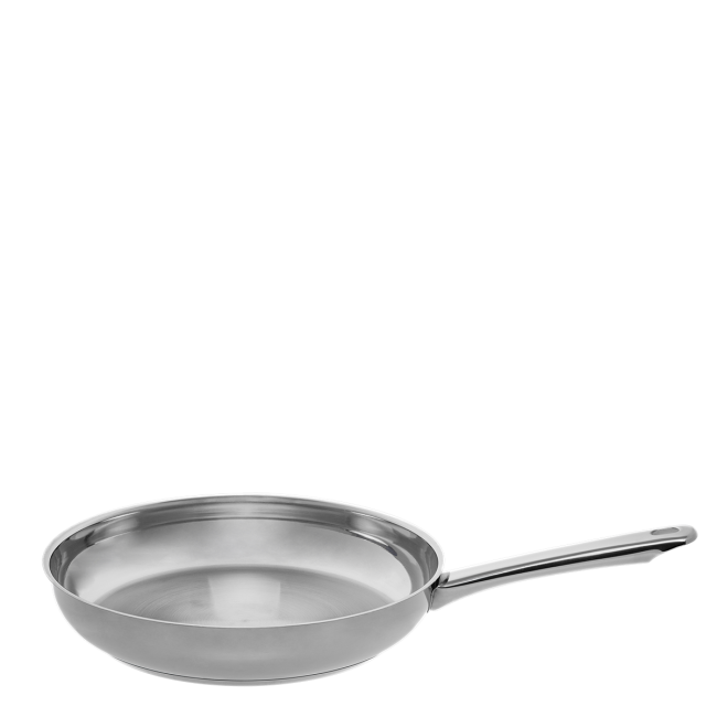 Die Bratpfanne der Master Chef Linie, hergestellt aus Chromnickelstahl 18/10 mit einem Durchmesser von 45 mm. Die Pfanne mit einer Antihaftbeschichtung ist bis zu 260 °C hitzbeständig. Der ferromagnetische Boden ist für alle Herdarten wie auch gewerbliche Spülmaschinen geeignet.