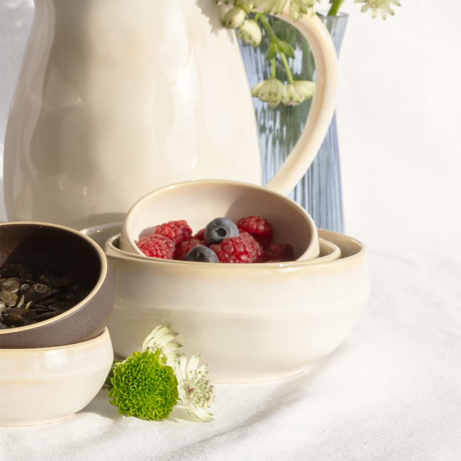 Die Sahnekännchen aus der Kollektion Gaya Elements North Quest ist die ideale Ergänzung für stilvolles Servieren in Restaurants und Cafés. Mit ihrer dunklen, nahezu schwarzen Oberfläche und Struktur verleiht sie dem Tisch eine elegante und rustikale Note. Dank des praktischen Henkelgriffs und des Ausgiessers ist die Handhabung einfach und präzise. Perfekt...