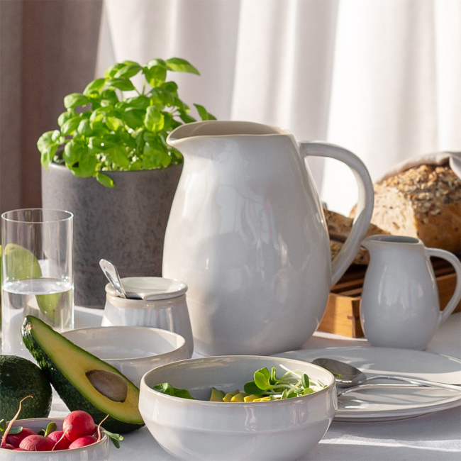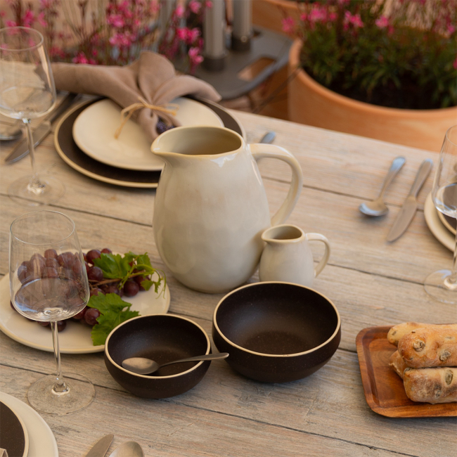 Die Sahnekännchen aus der Kollektion Gaya Elements North Quest ist die ideale Ergänzung für stilvolles Servieren in Restaurants und Cafés. Mit ihrer dunklen, nahezu schwarzen Oberfläche und Struktur verleiht sie dem Tisch eine elegante und rustikale Note. Dank des praktischen Henkelgriffs und des Ausgiessers ist die Handhabung einfach und präzise. Perfekt...
