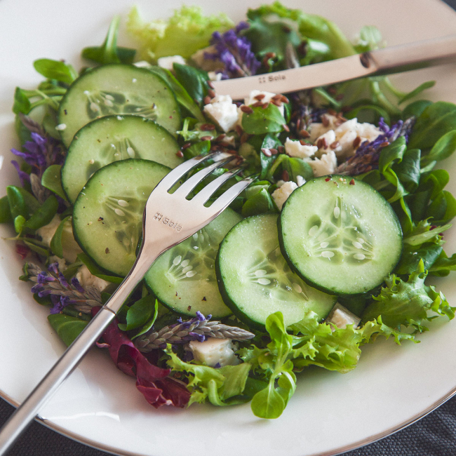 Salad/vegetable fork Avantgarde made of high quality chrome nickel steel 18/10 with 7 mm material thickness. The fork handle is sandblasted. The salad/vegetable fork is suitable for industrial dishwashers. The Avantgarde product line was created by designer James Kawada and won several international awards.