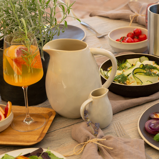 The cream jug from the Gaya Elements North Quest collection is the ideal addition for stylish serving in restaurants and cafés. With its dark, nearly black surface and texture, it adds an elegant and rustic touch to the table. The practical handle and spout ensure easy and precise handling, making it perfect for serving cream, milk, or sauces. It is...