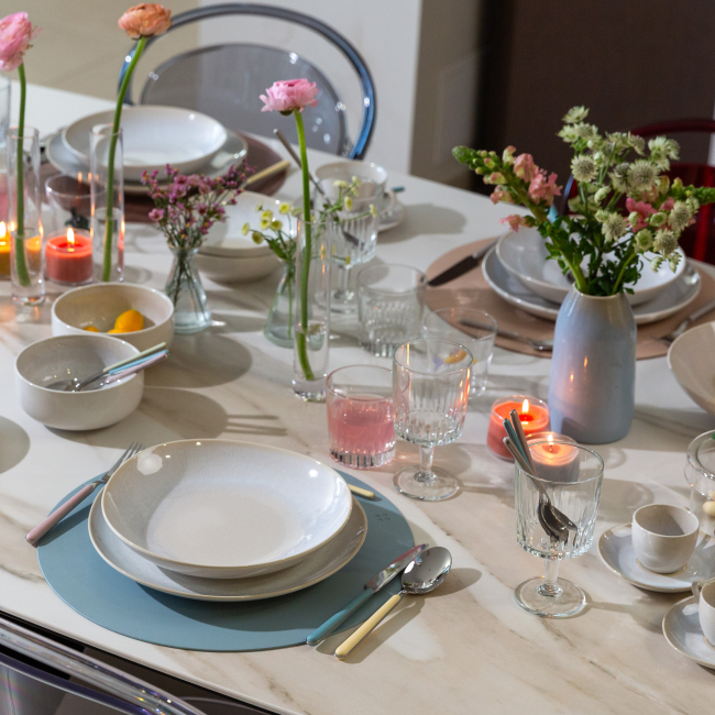 The Coupe flat plate in beige tones adds an elegant touch to food presentation. The glazed surface creates natural colour transitions, making each piece unique and allowing slight variations in shade or pattern. Ideal for cafés, restaurants and hotels. Dishwasher safe.
