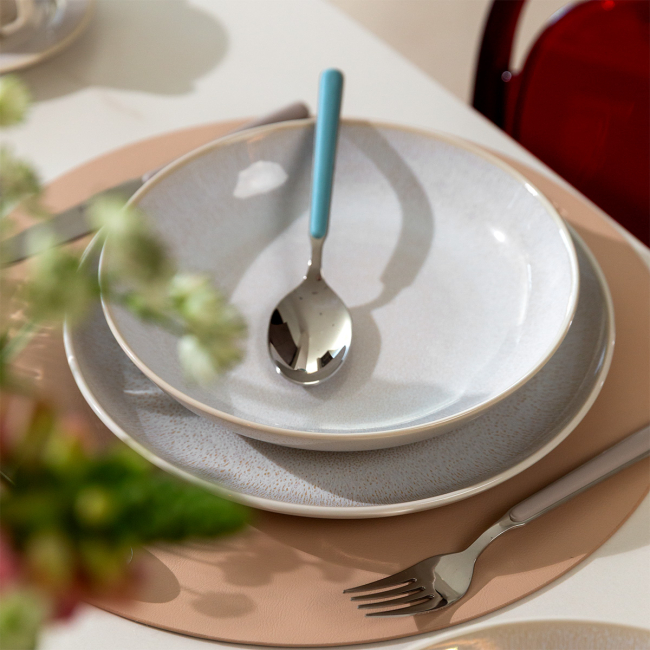 The Coupe deep plate in beige tones adds an elegant touch to serving soups and dishes. The glazed surface creates natural colour transitions, making each piece unique and allowing slight variations in shade or pattern. Ideal for cafés, restaurants and hotels. Dishwasher safe.