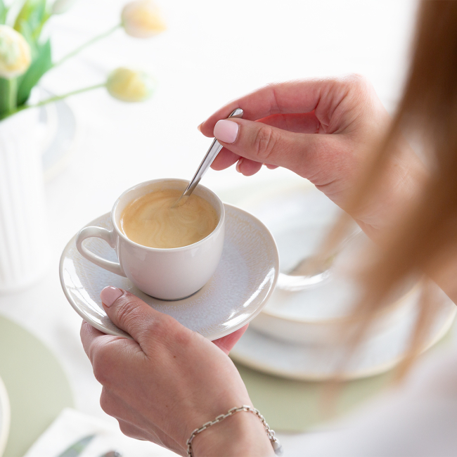 Kávový set v béžových tónoch dotvára elegantný dojem pri servírovaní kávy. Glazúrovaný povrch vytvára prirodzené farebné prechody, vďaka ktorým je každý kus originál a môže sa mierne líšiť odtieňom či kresbou. Ideálny pre kaviarne, reštaurácie a hotely. Vhodný do umývačky.